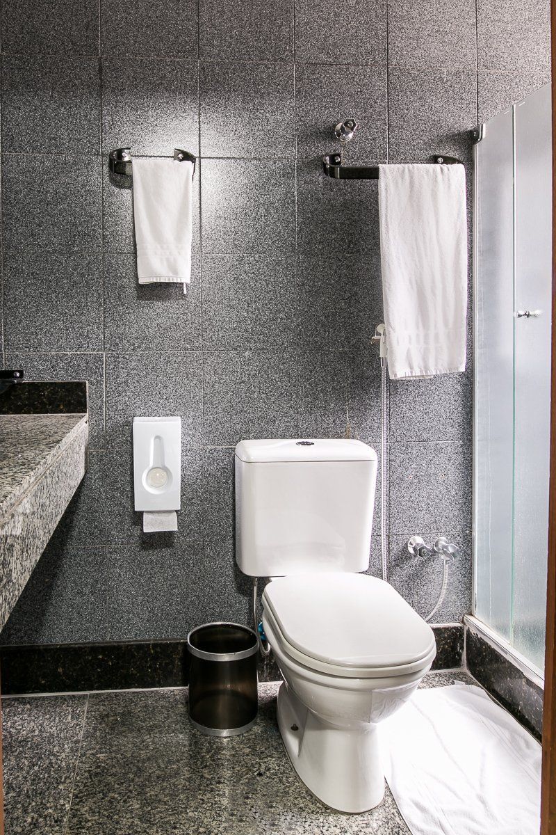 Disponibiliza ar condicionado, piso frio de granito ou azulejo, frigobar, telefone, banheiro privativo, serviço de despertar, TV Led à cabo com controle remoto.