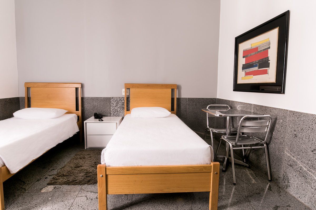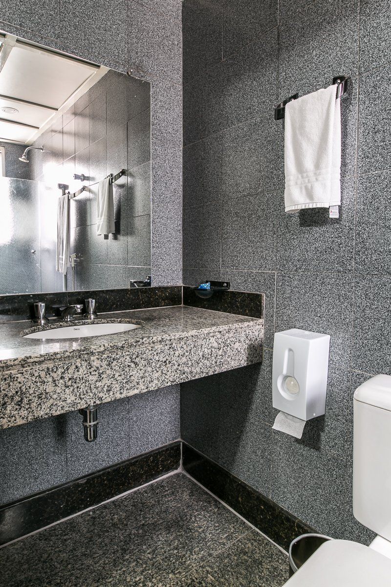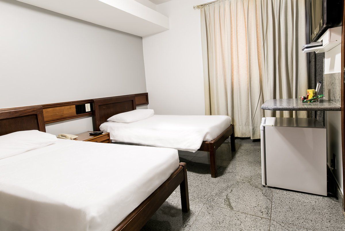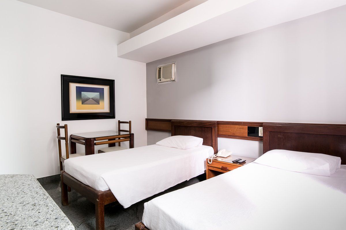 Disponibiliza ar condicionado, piso frio de granito ou azulejo, frigobar, telefone, banheiro privativo, serviço de despertar, TV Led à cabo com controle remoto.